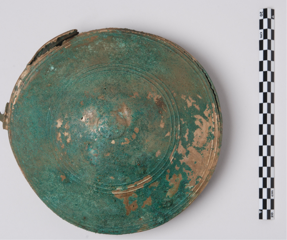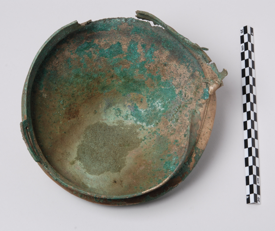 Næste morgen stod vi sammen på marken, hvor borgerforeningen er i gang med at etablere et rekreativt område kaldet Naturrum. Her blev to næsten intakte hængekar fra perioden omkring 900–700 f.Kr. forsigtigt gravet op. Et hængekar er en skålformet bronzebeholder til at bære på et bælte, sandsynligvis brugt til at rumme mindre genstande. Inde i det ene kar gemte sig en tutulus – et kvindesmykke, der ofte ses i forbindelse med hængekarrene.
